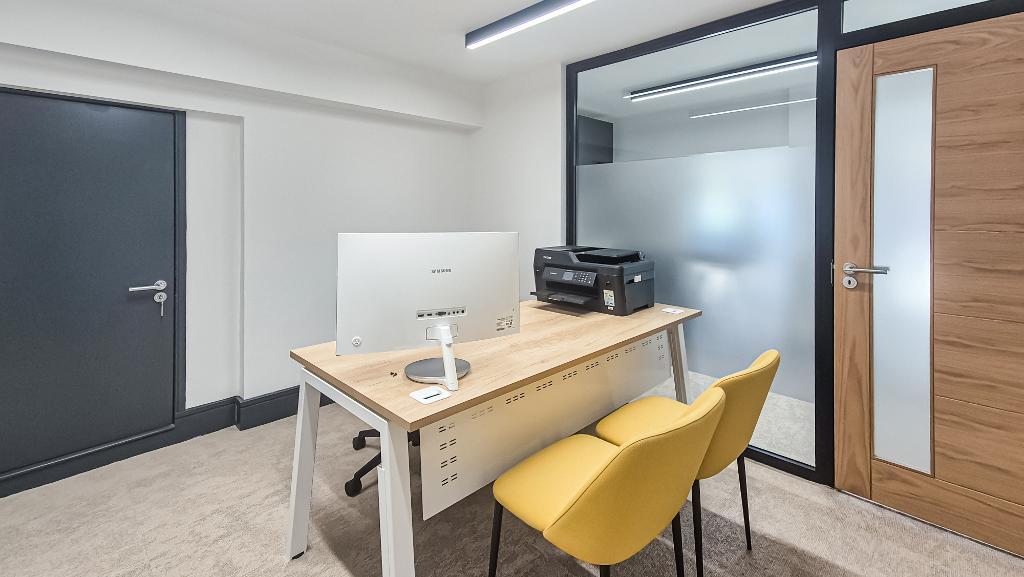 Each office benefits from inclusive bills, with use of a shared kitchen and toilets on site. The premises are protected by an alarm system and CCTV, with secure access for occupants. The environment is professional, well-presented and suited to small teams or sole practitioners seeking a ready-made base within a property-focused setting.