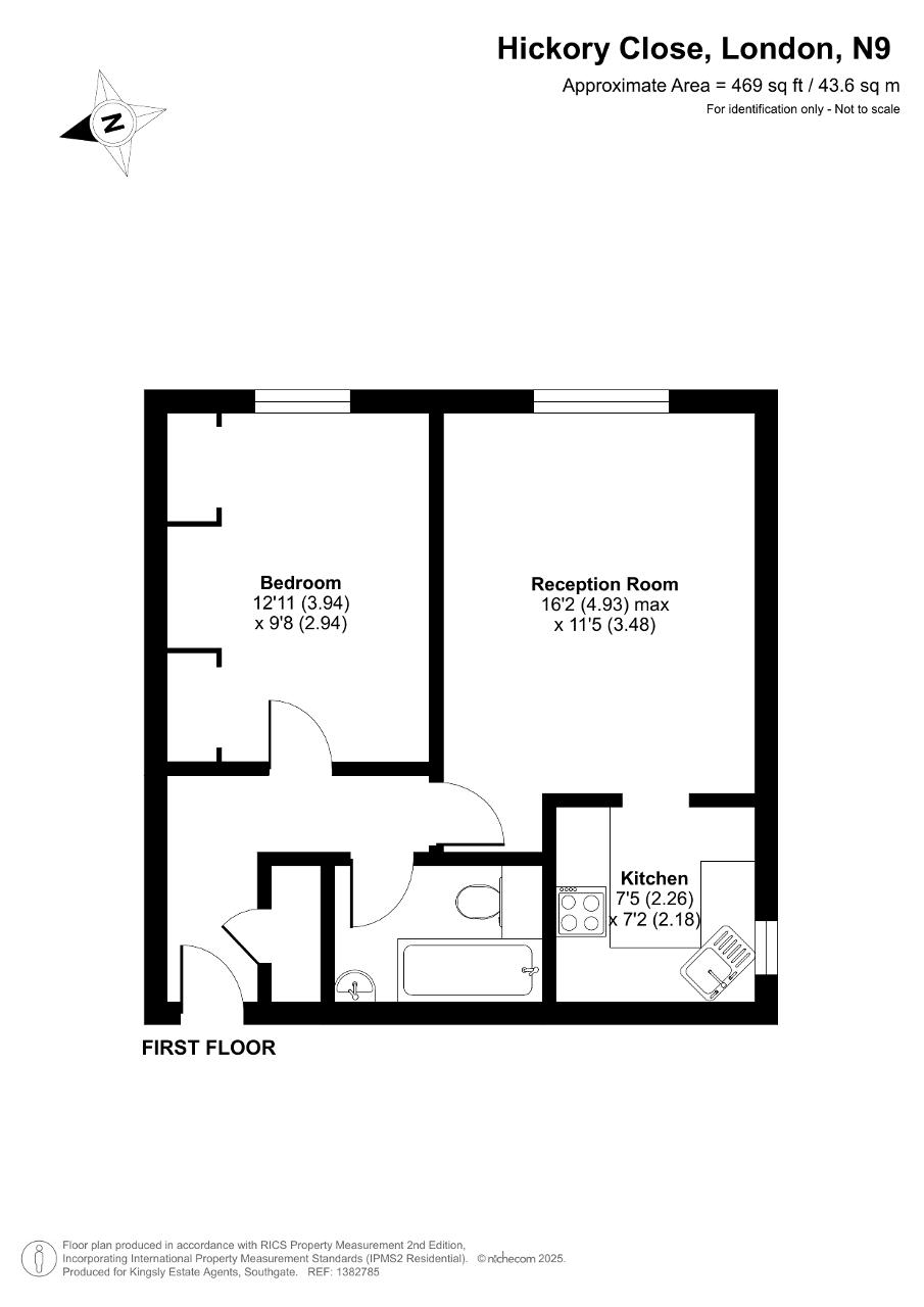 This first floor one bedroom flat in Hickory Close offers a comfortable and practical home within a quiet residential setting in Edmonton, N9. The property provides a well-arranged layout with a bright living area, a separate fitted kitchen, a good-sized double bedroom and a bathroom. The flat forms part of a purpose-built development with communal grounds and residents" parking, making it well suited to both first-time buyers and investors.